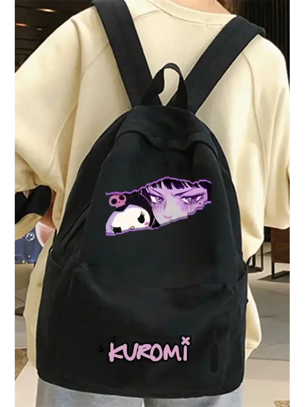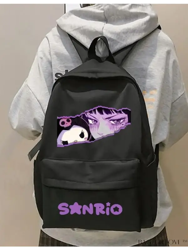 Mor Anime X Kuromi Sanrio Eyes Baskılı Okul, Dershane, Kurs Sırt Çantası