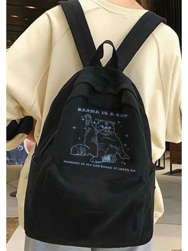 Karma Is A Cat Baskılı Unisex Sırt Çantası
