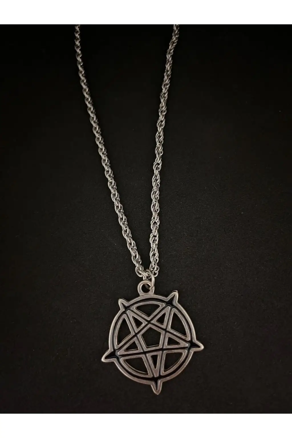 Siyah Gümüş Kaplama Paslanmaz Çelik Unisex Gotik Pentegram Aksesuar Zincirli Kolye, günlük kullanımınızda veya özel günlerinizde stilinizi tamamlayacak şık bir detay olacaktır.