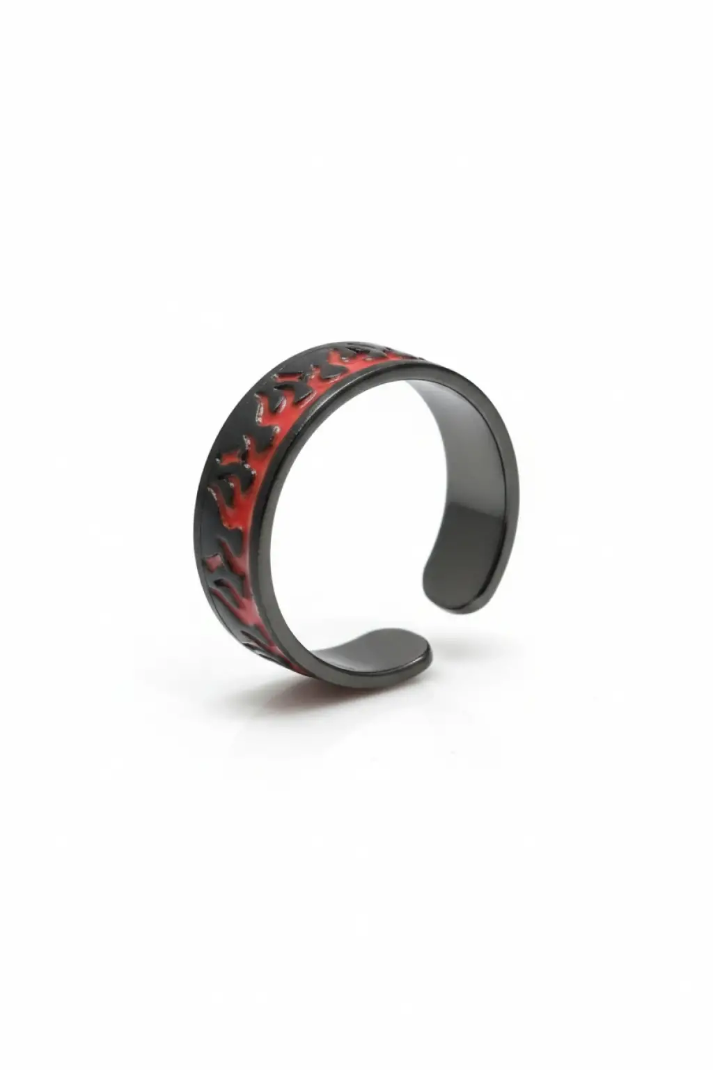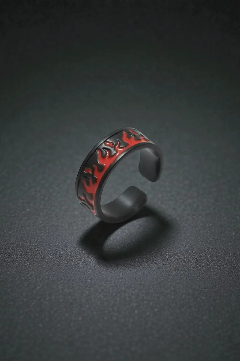 GOSSİP TEAM Anime Tarzı Siyah Kırmızı Alev Desenli Yüzük, tarzınıza ve kişiliğinize farklı bir hava katacak!