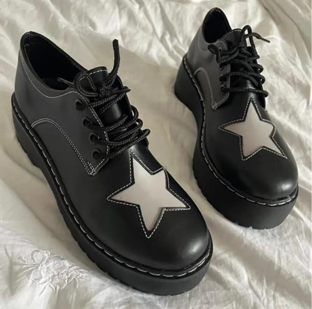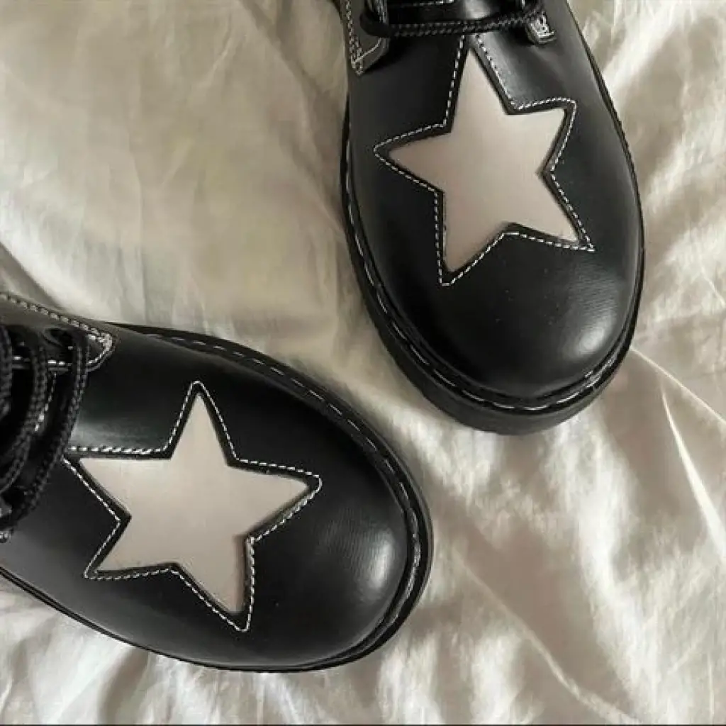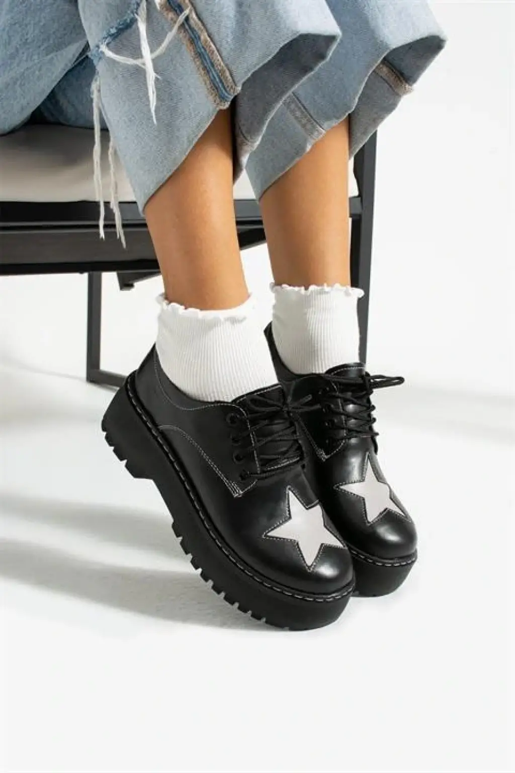 Siyah Oxford Star Detail Lolita Ayakkabı