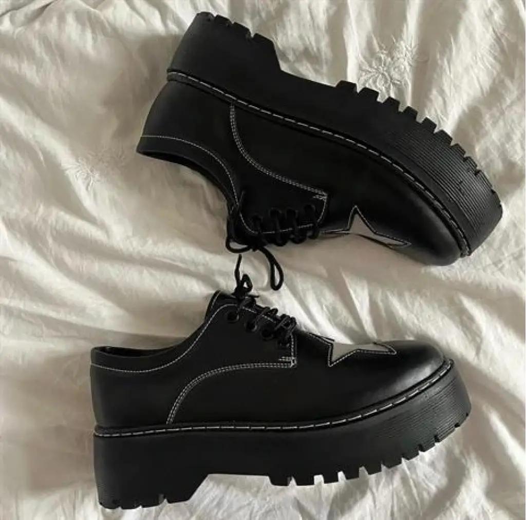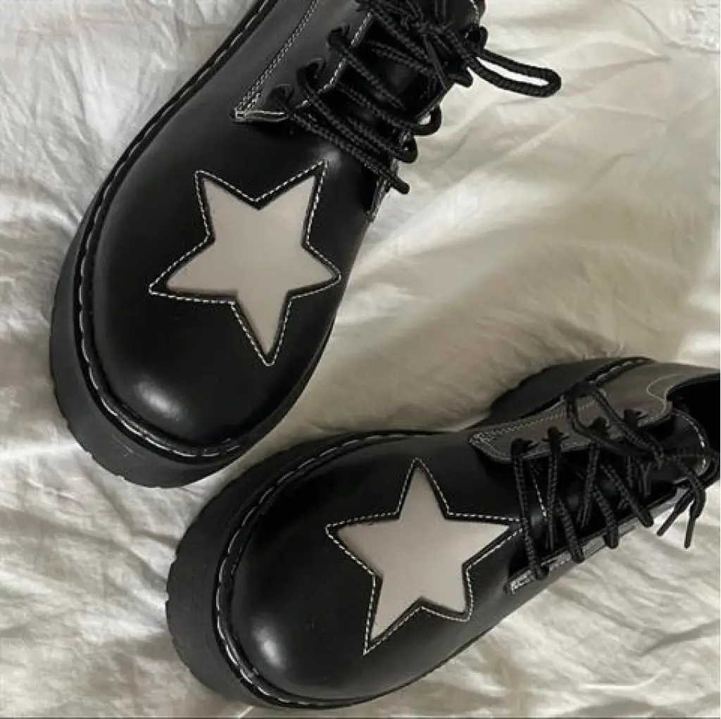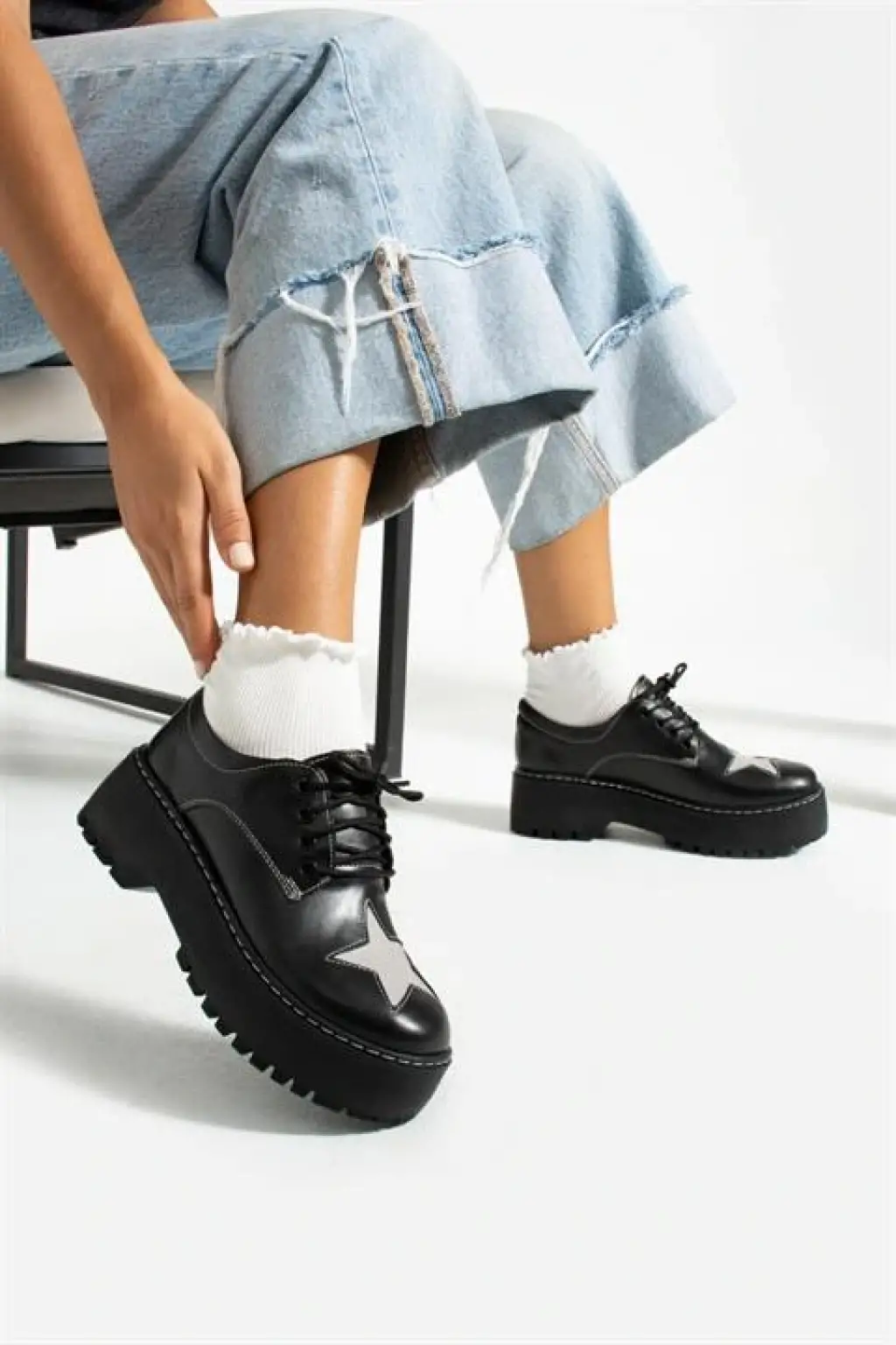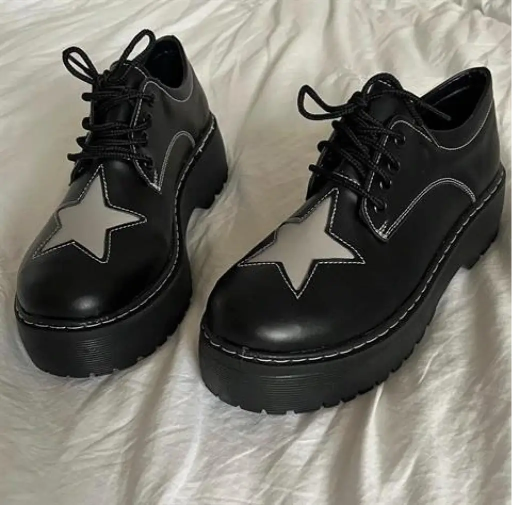 Siyah Oxford Star Detail Lolita Ayakkabı
