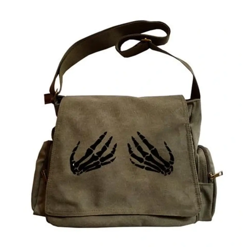 Skeleton Hands Baskılı Unisex Yeşil Postacı Çantası