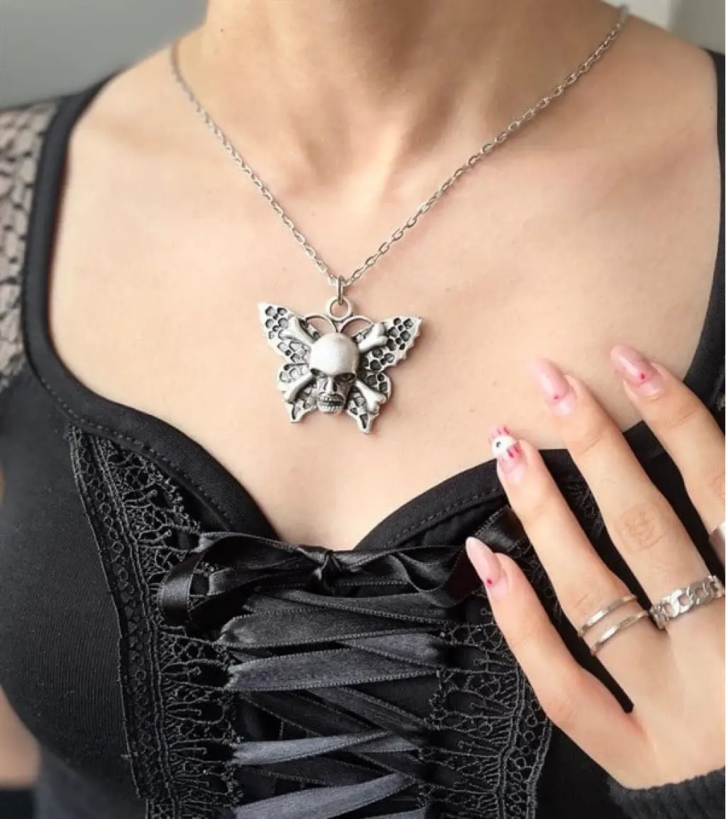 Gümüş Renk Zincirli Siyah Taşlı Kalp Fiyonk İtalyan Kolye