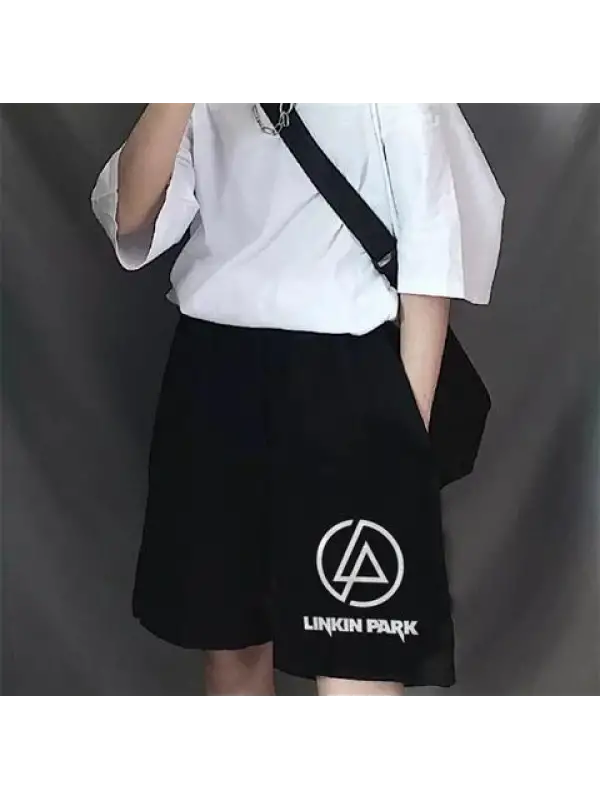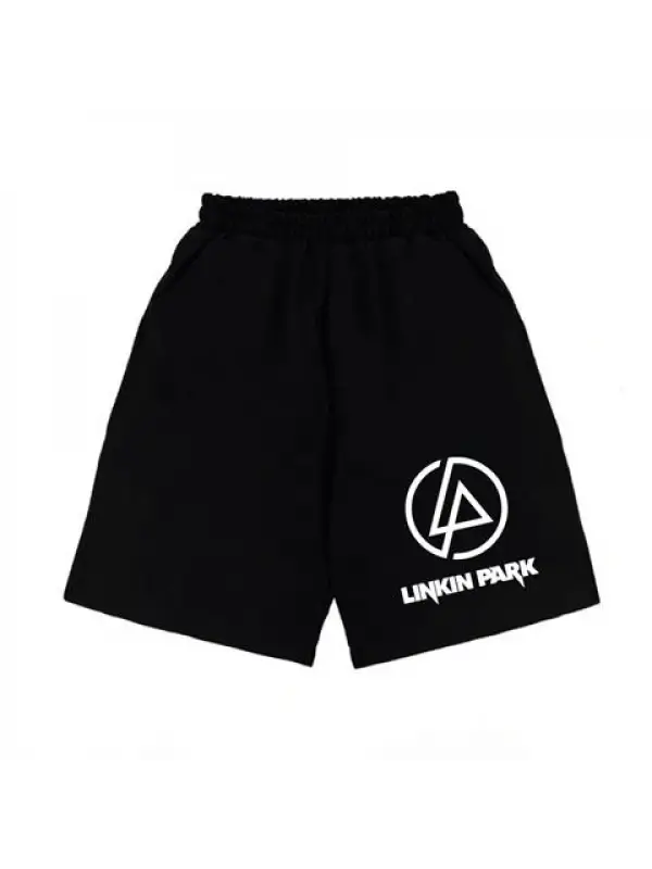 Linkin Park Logo Baskılı Siyah Unisex Penye Şort
