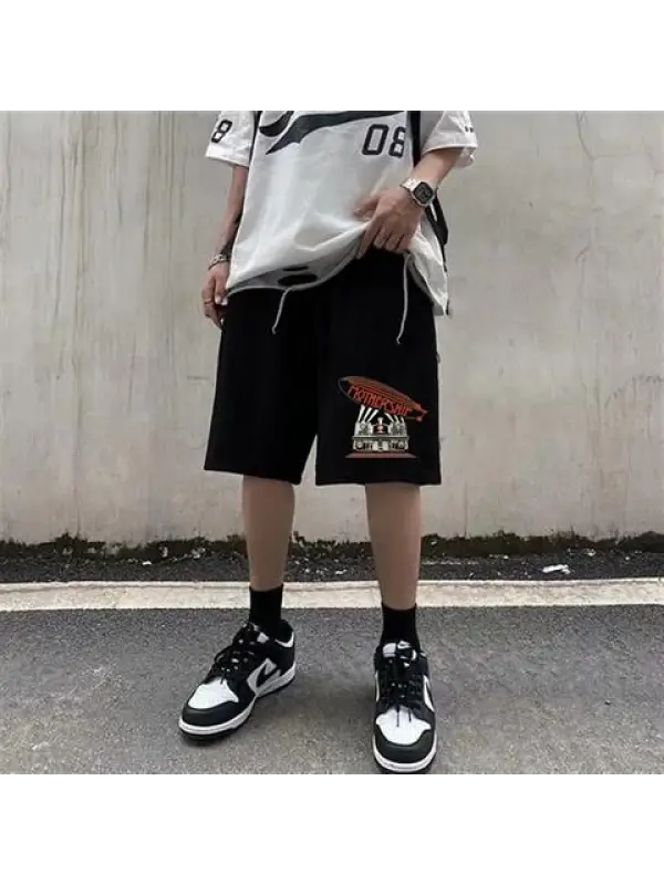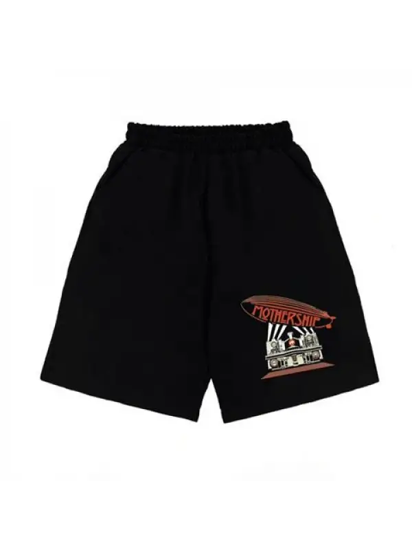 Mothership Led Zeppelin Baskılı Siyah Unisex Penye Şort