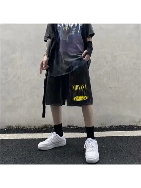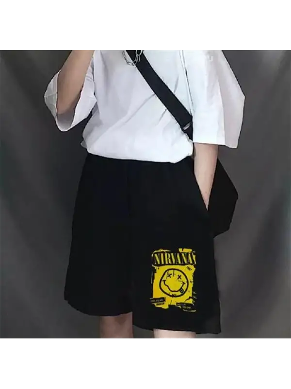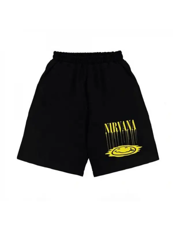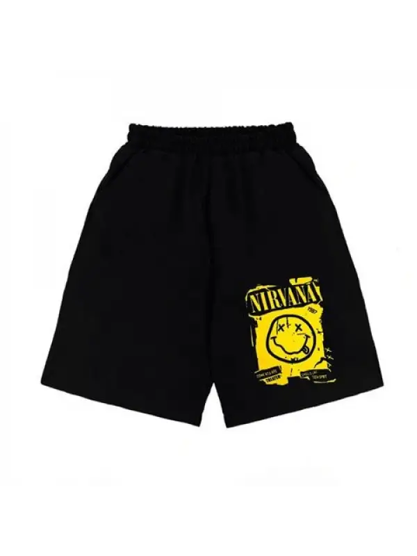 Nirvana Smile Baskılı Siyah Unisex Penye Şort