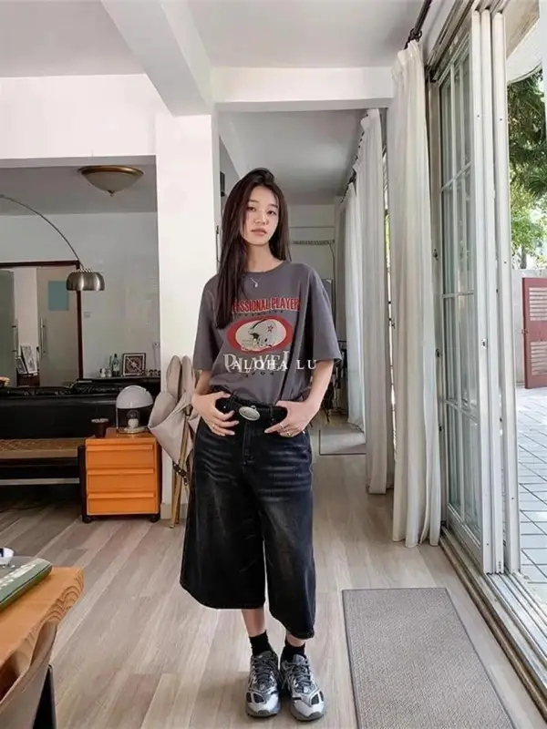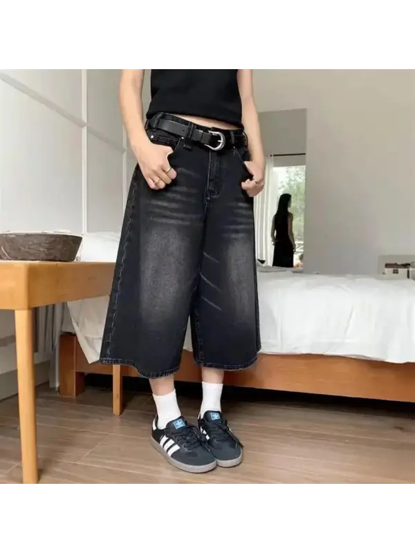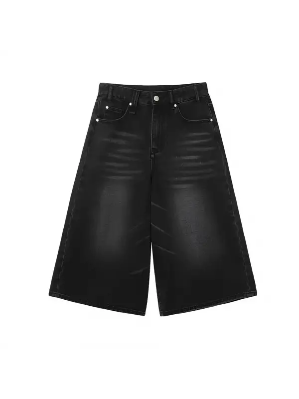 Siyah Yıkamalı Kumaş Y2K Unisex Baggy Oversize Kalıp Kot Pantolon Şort
