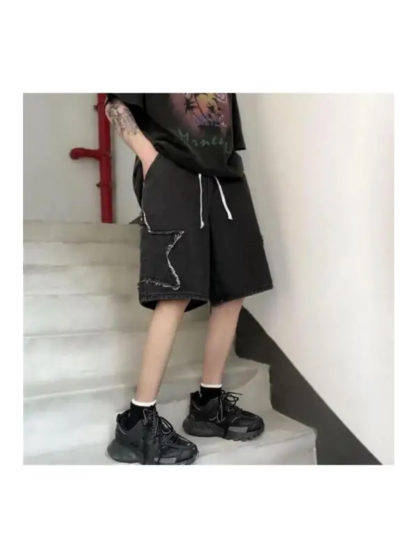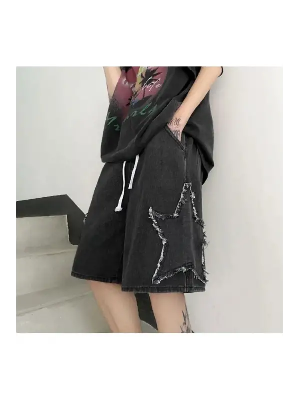 Star Patch Detay Streetwear Yıkamalı Kot Kısa Şort