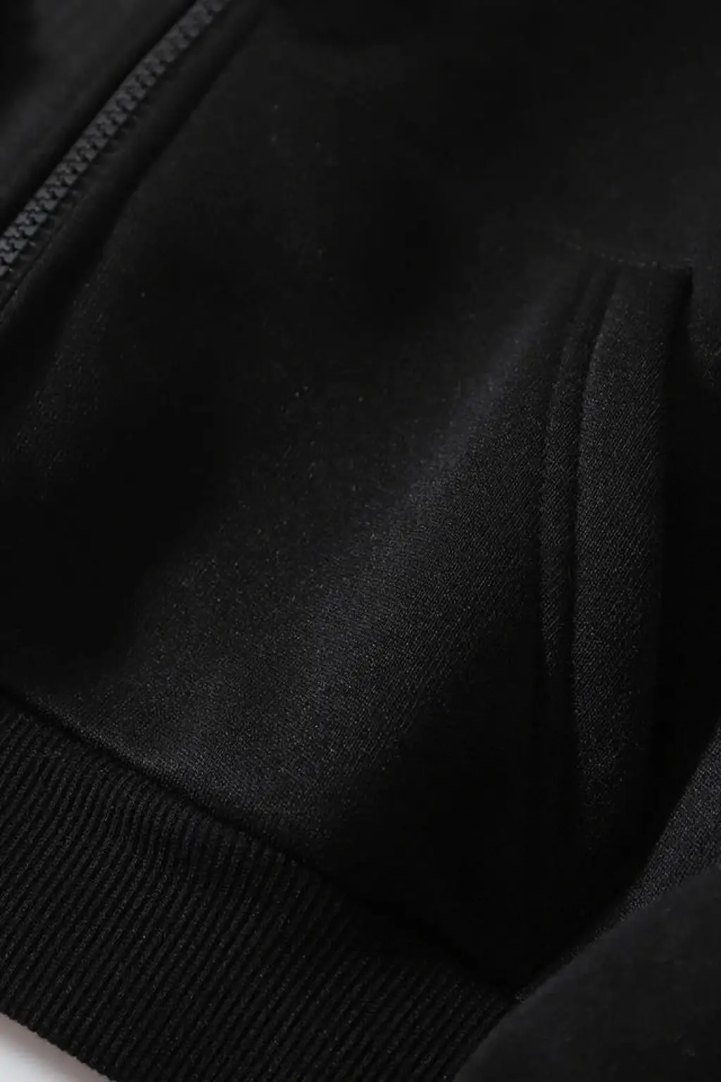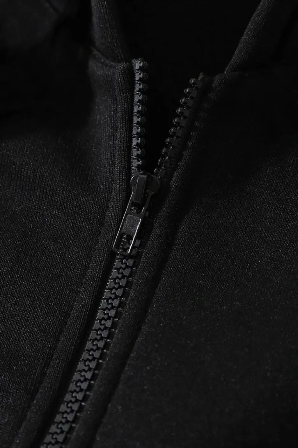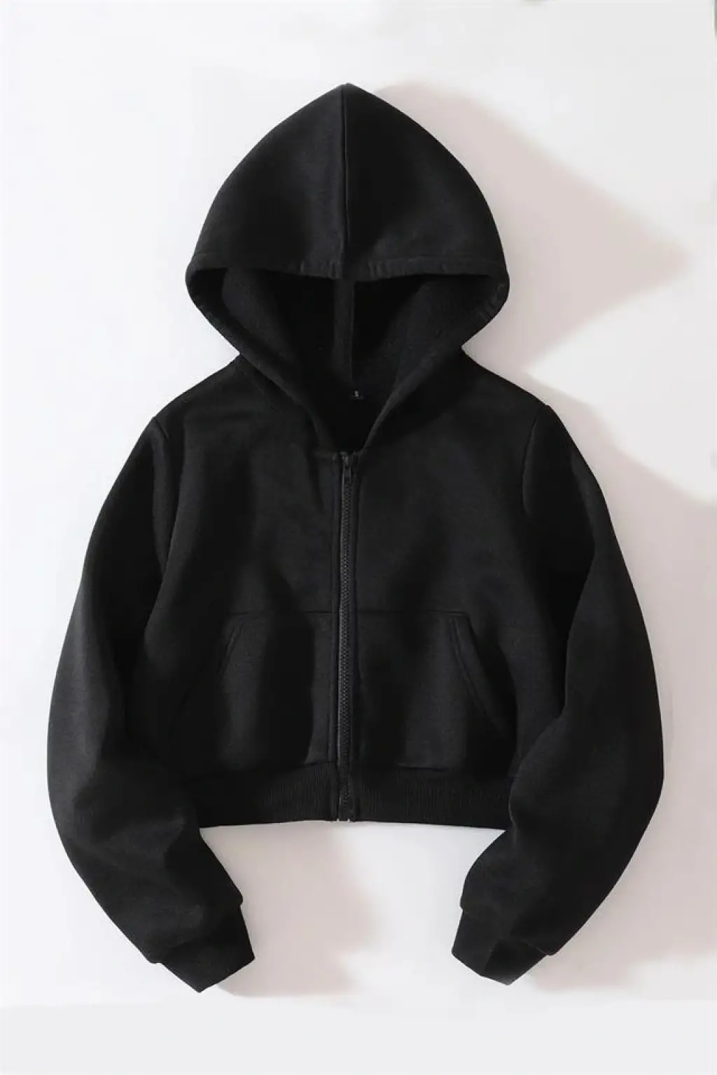 Streetwear Fermuarlı Uzun Kollu Siyah Crop Hırka