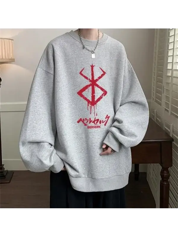 Berserk Logo Baskılı Siyah Unisex Oversize Bisiklet Yaka Sweatshirt