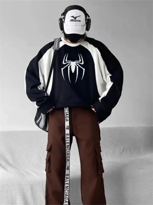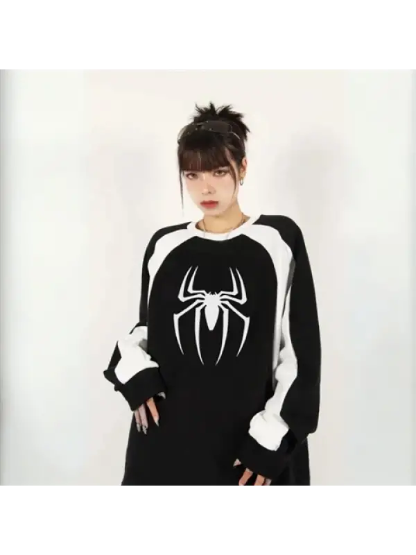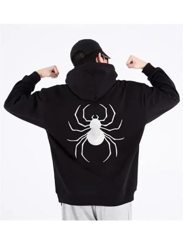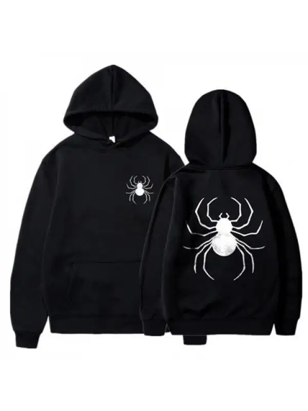 Dangerous Spider Ön-Arka Baskılı Siyah Unisex Oversize Kapüşonlu Sweatshirt