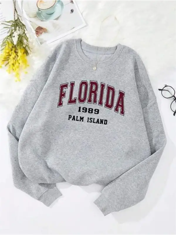 Florida Baskılı Gri Unisex Oversize Bisiklet Yaka Sweatshirt