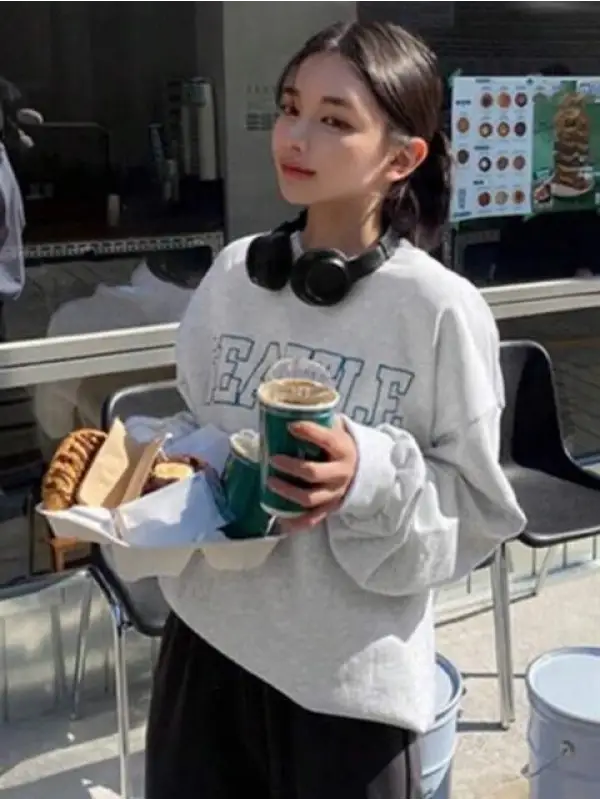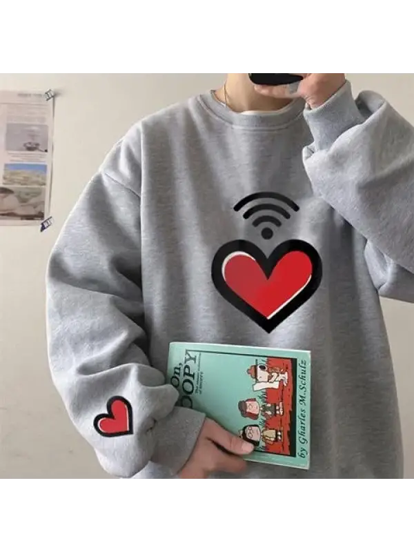 Heart Signal Baskılı Gri Unisex Oversize Bisiklet Yaka Sweatshirt
