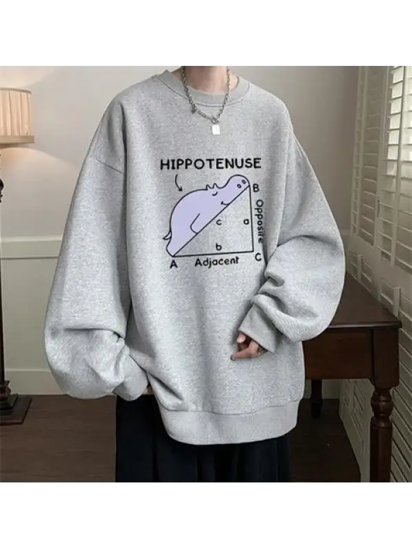 Hippotenuse Baskılı Siyah Unisex Oversize Bisiklet Yaka Sweatshirt