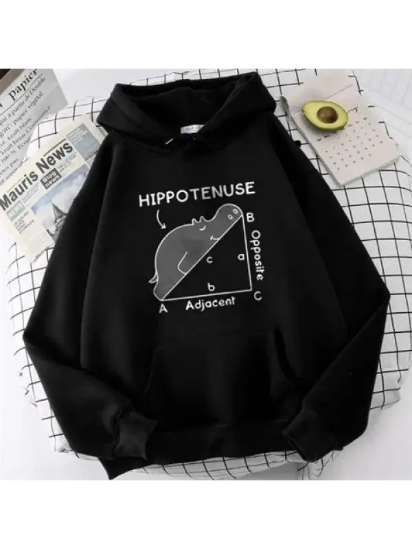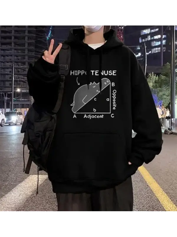 Hippotenuse Baskılı Siyah Unisex Oversize Kapüşonlu Sweatshirt