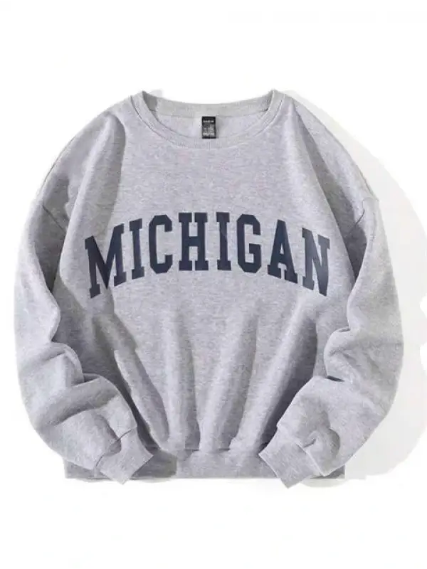 Michigan Baskılı Gri Unisex Oversize Bisiklet Yaka Sweatshirt