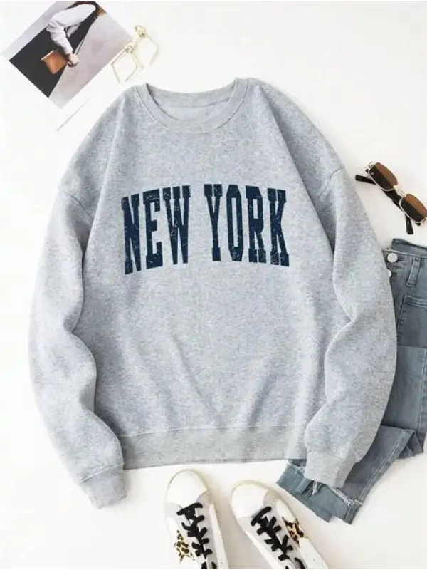 New York Baskılı Gri Unisex Oversize Bisiklet Yaka Sweatshirt