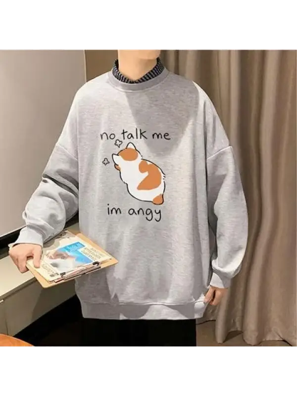 No Talk Me Baskılı Siyah Unisex Oversize Bisiklet Yaka Sweatshirt