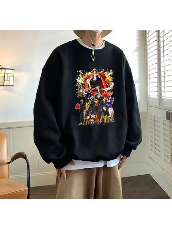 One Piece All Characters Baskılı Siyah Unisex Oversize Bisiklet Yaka Sweatshirt