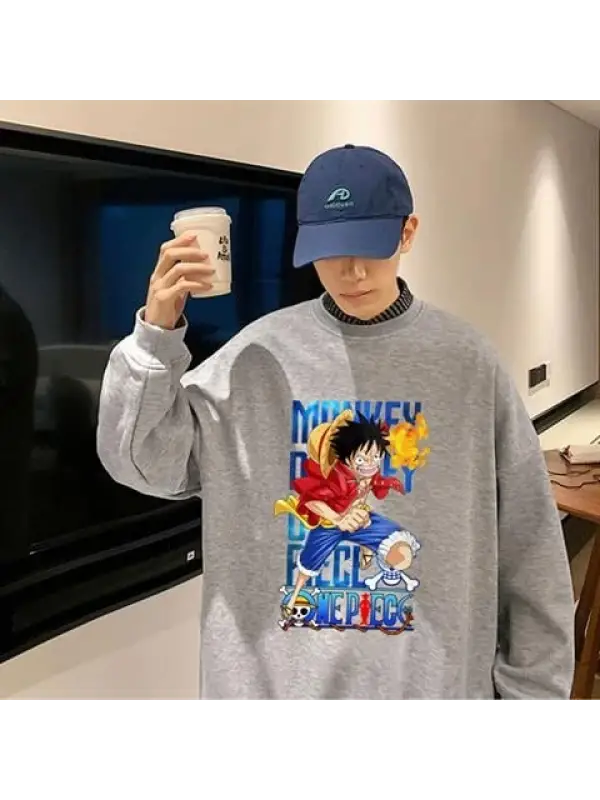 One Piece Running Baskılı Siyah Unisex Oversize Bisiklet Yaka Sweatshirt