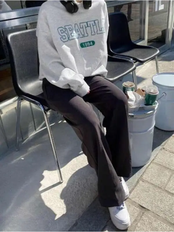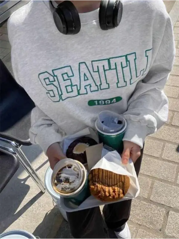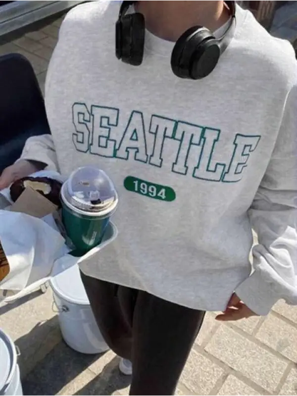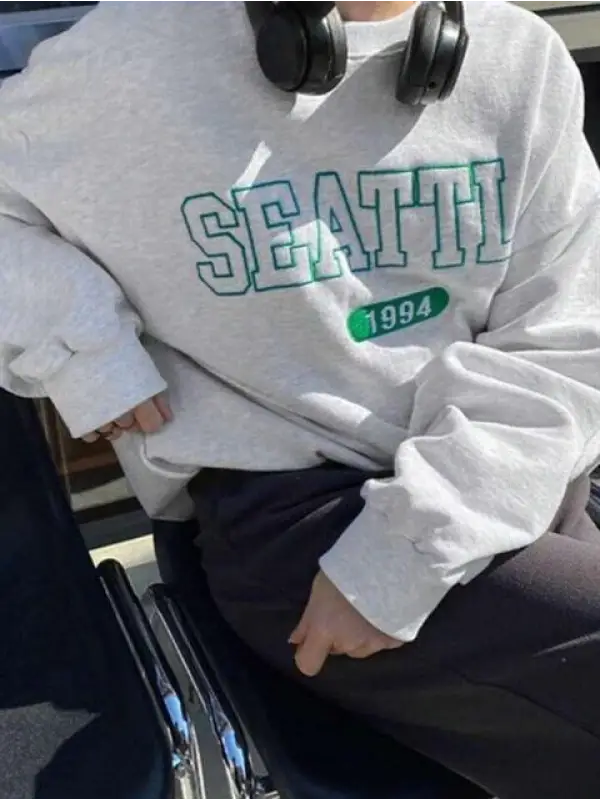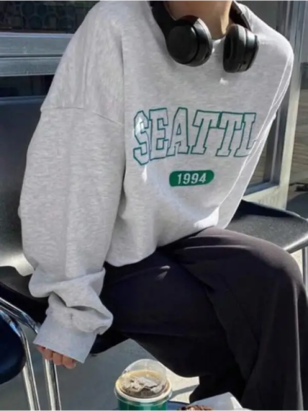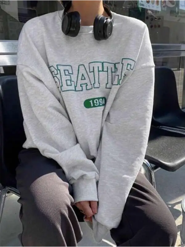Seattle Baskılı Gri Unisex Oversize Bisiklet Yaka Sweatshirt