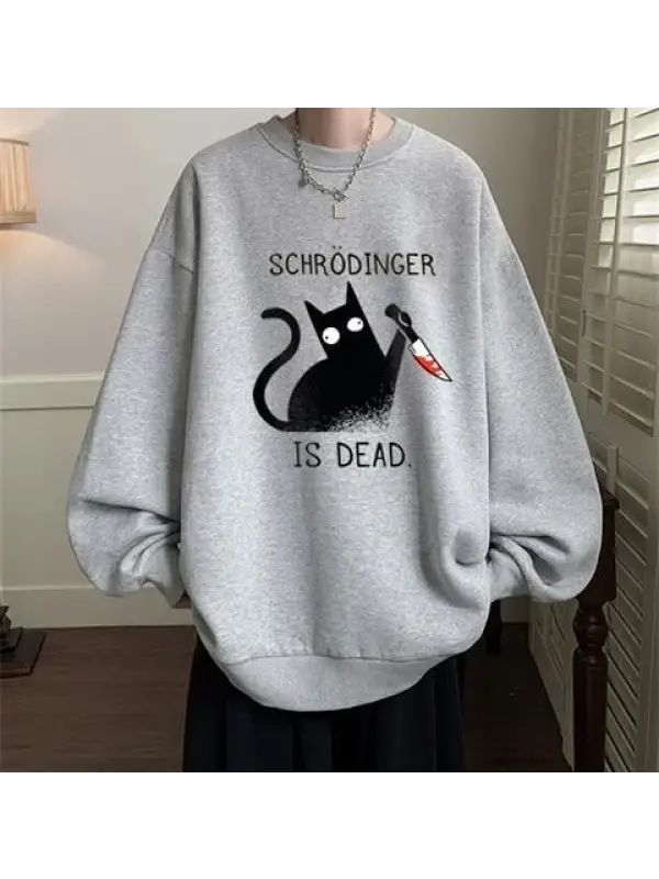 Shrödinger Is Dead Baskılı Gri Unisex Oversize Bisiklet Yaka Sweatshirt