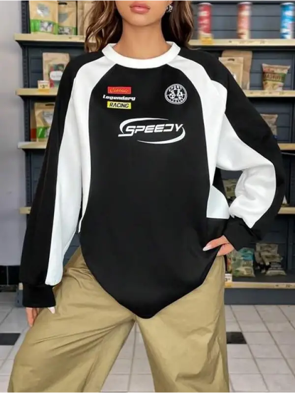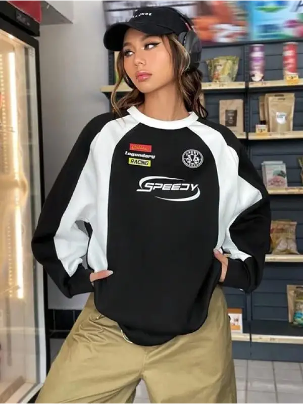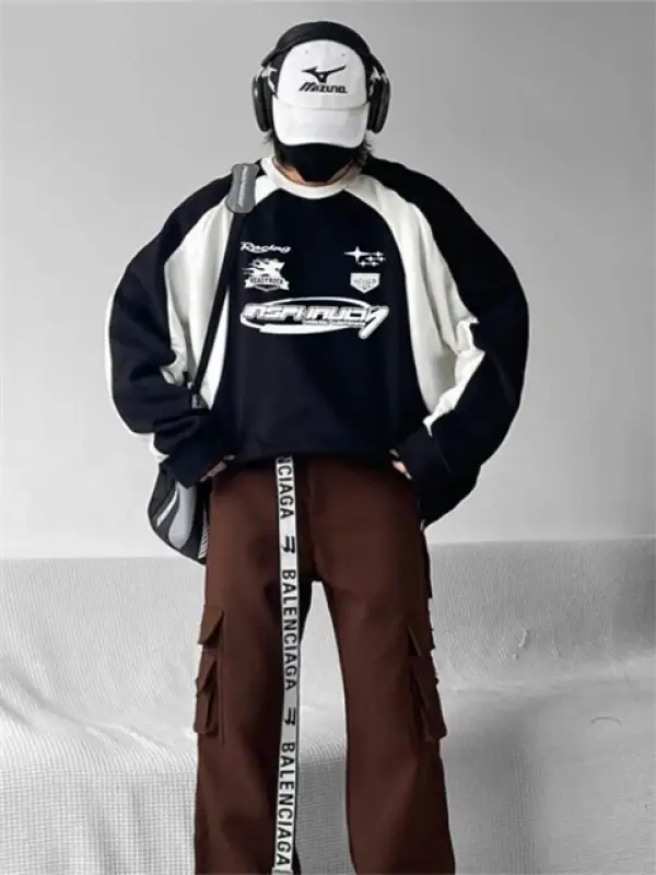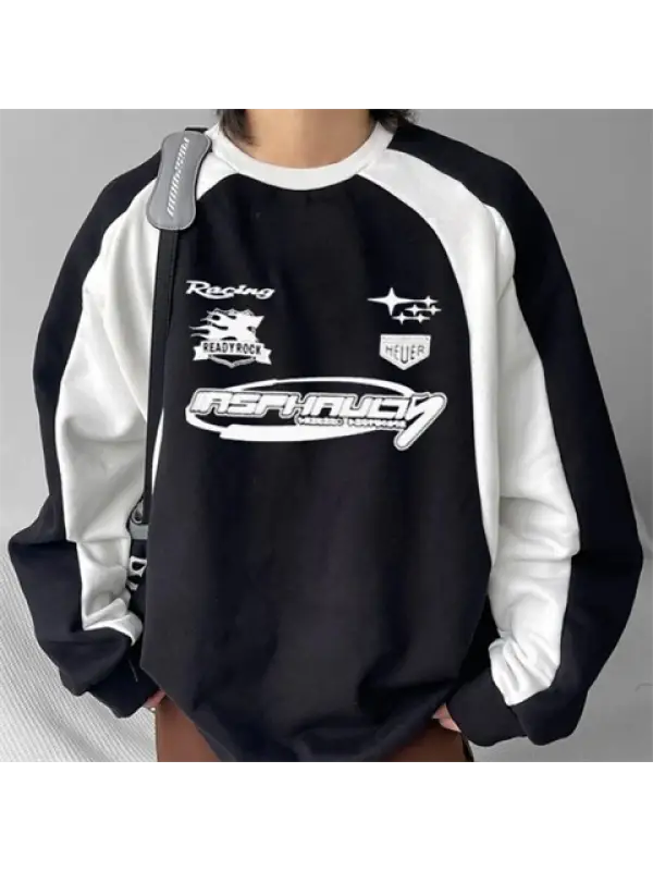 Y2K Streetwear Racing Have Baskılı Siyah Unisex Oversize Bisiklet Yaka Sweatshirt