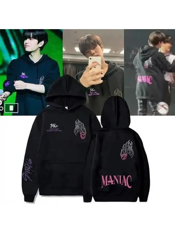 Stray Kids Maniac Ön-Arka Ve Kol Baskılı Siyah Unisex Oversize Kapüşonlu Sweatshirt
