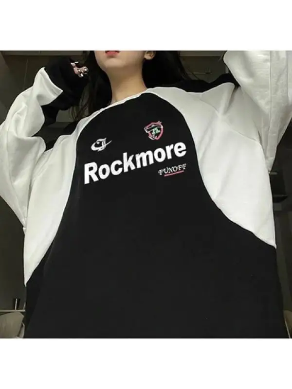 Y2K Streetwear Rockmore Funoff Baskılı Siyah Unisex Oversize Bisiklet Yaka Sweatshirt