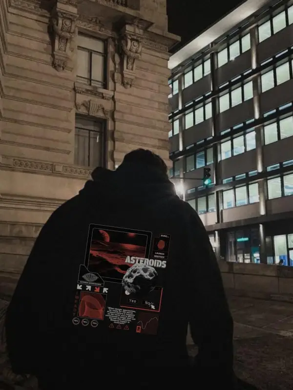 Asteroids Baskılı Siyah Kapşonlu Sweatshirt