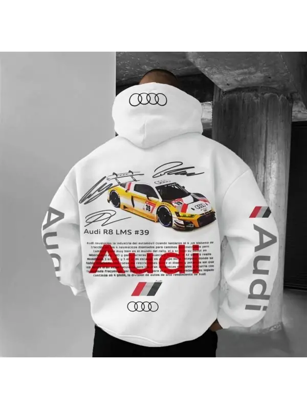Audi Baskılı Beyaz Kapşonlu Sweatshirt