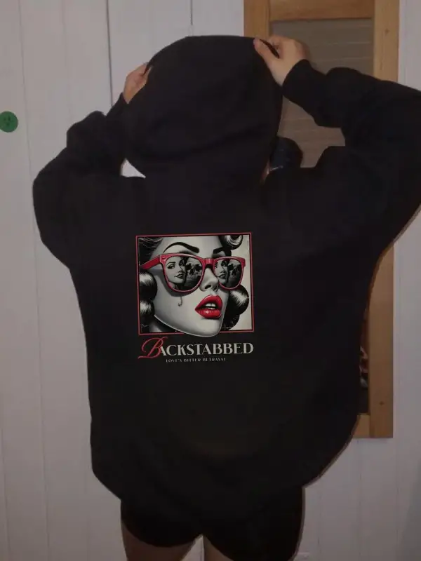 Bacstabbed Baskılı Siyah Kapşonlu Sweatshirt