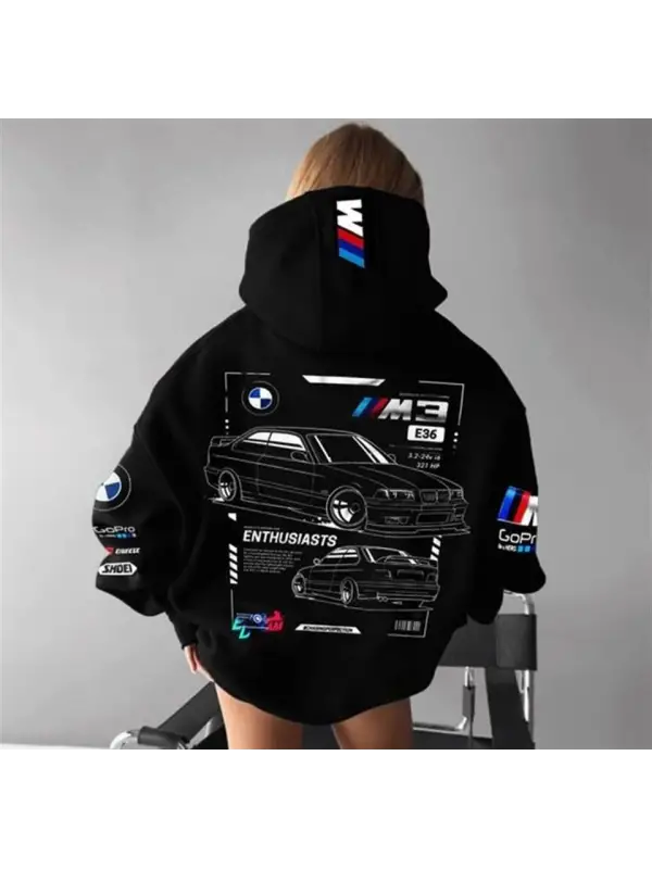 BMW M3 Baskılı Siyah Kapşonlu Sweatshirt