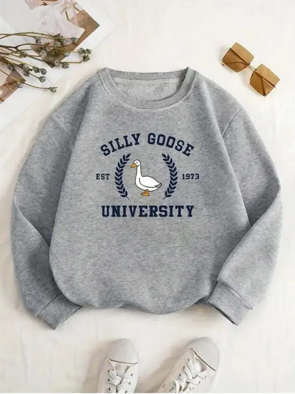 Cute Duck Baskılı Gri Unisex Oversize Bisiklet Yaka Sweatshirt