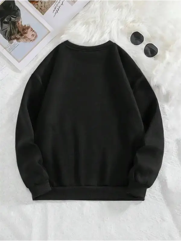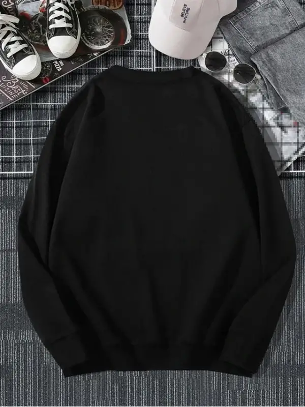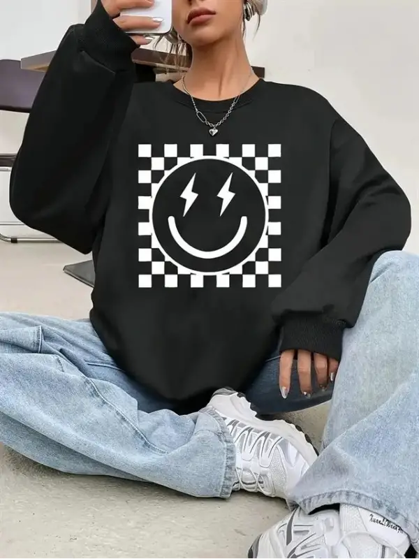 Dama Desen Smile Baskılı Siyah Unisex Oversize Bisiklet Yaka Sweatshirt