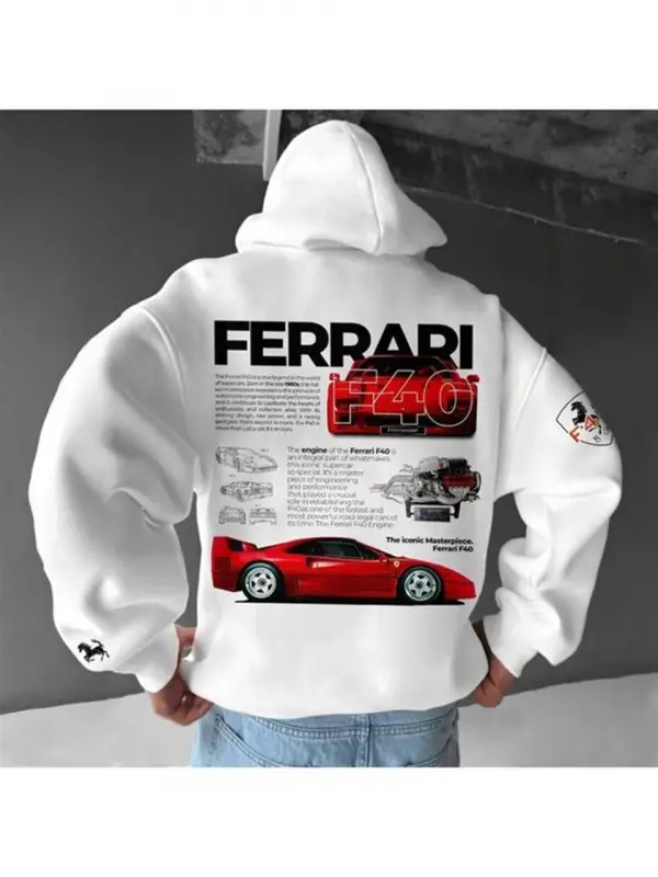 Ferrari Baskılı Beyaz Kapşonlu Sweatshirt