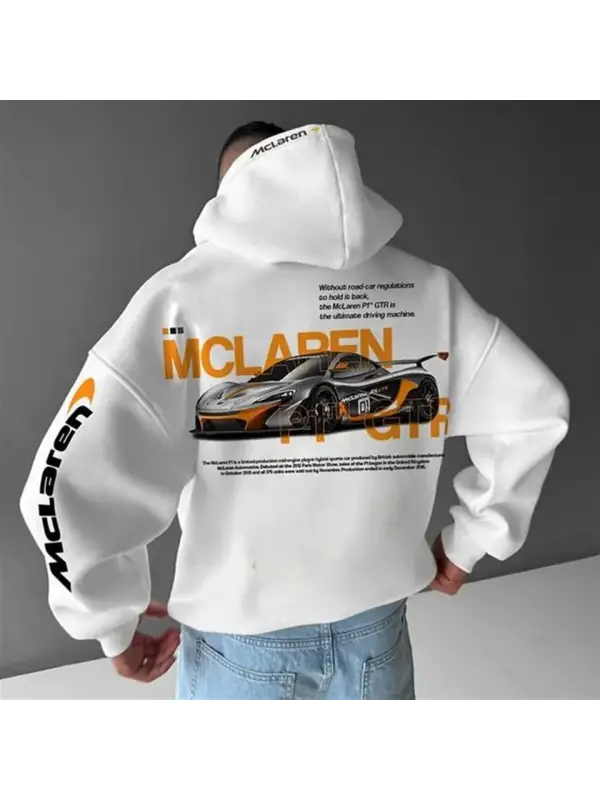 Mc Laren Baskılı Beyaz Kapşonlu Sweatshirt