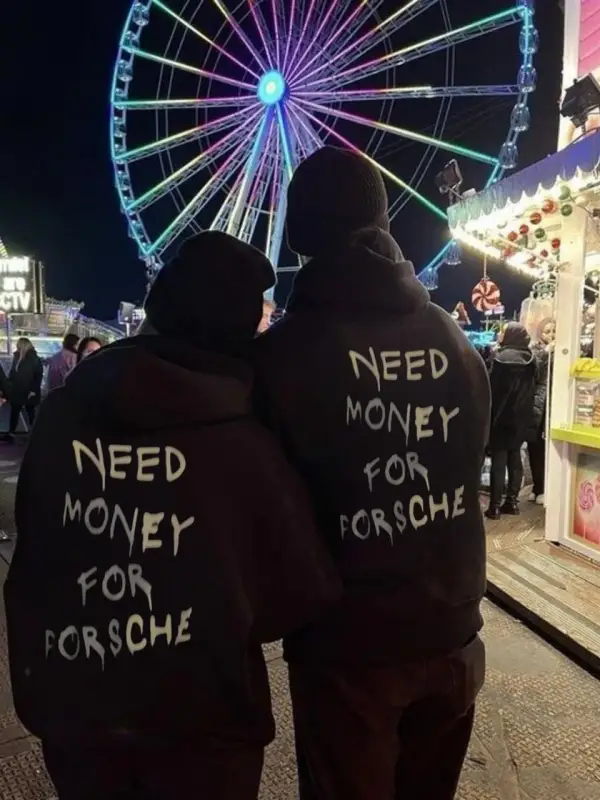 Need Money For Porsche Baskılı Siyah Kapşonlu Sweatshirt
