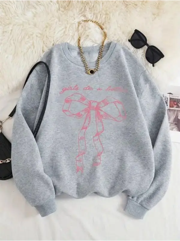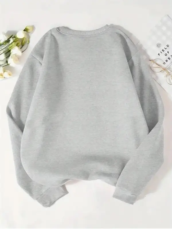 Ribbon Baskılı Gri Unisex Oversize Bisiklet Yaka Sweatshirt
