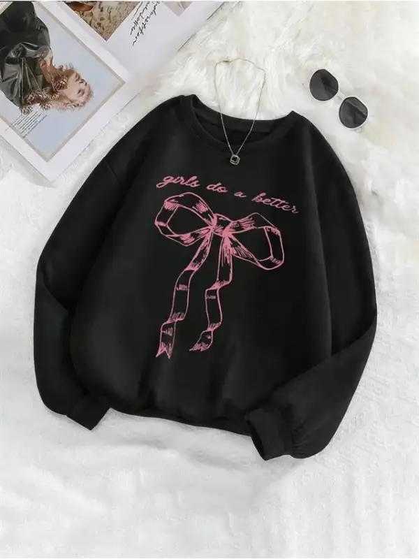 Ribbon Baskılı Siyah Unisex Oversize Bisiklet Yaka Sweatshirt