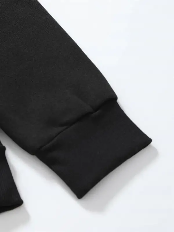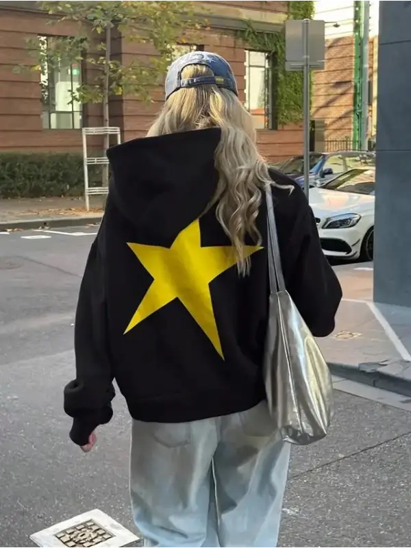 Y2k Star Baskılı Siyah Kapşonlu Sweatshirt