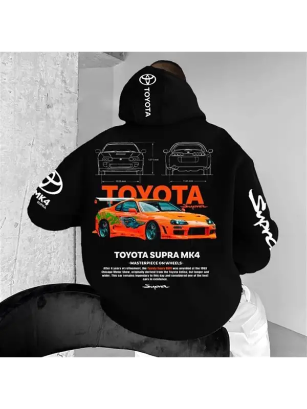 Toyota Supra Baskılı Siyah Kapşonlu Sweatshirt
