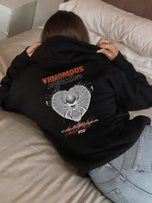 Venomous Baskılı Siyah Kapşonlu Sweatshirt