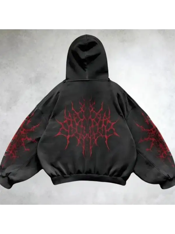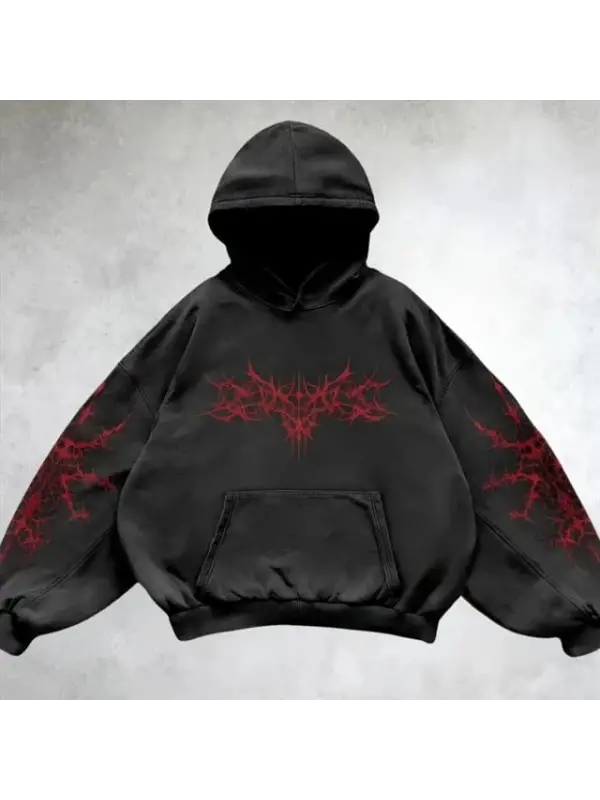 Yıkamalı Red Gothic Vintage Kapüşonlu Sweatshirt