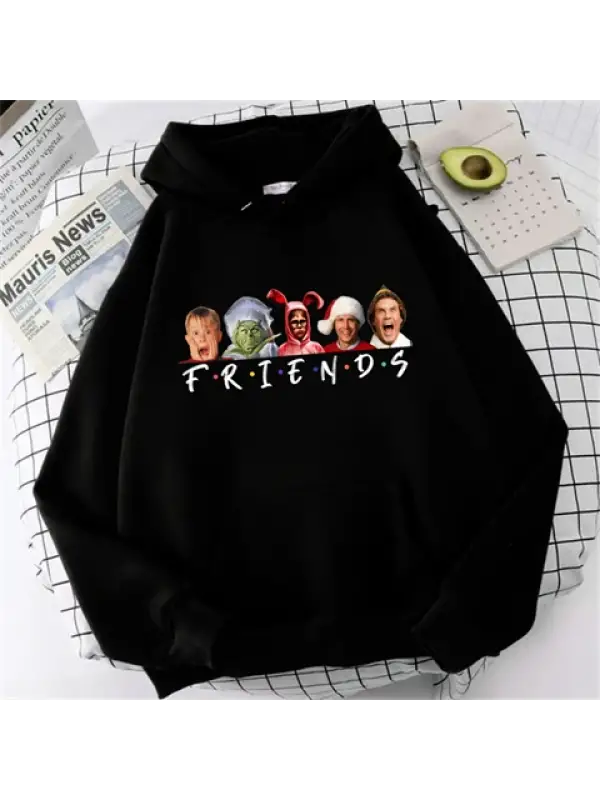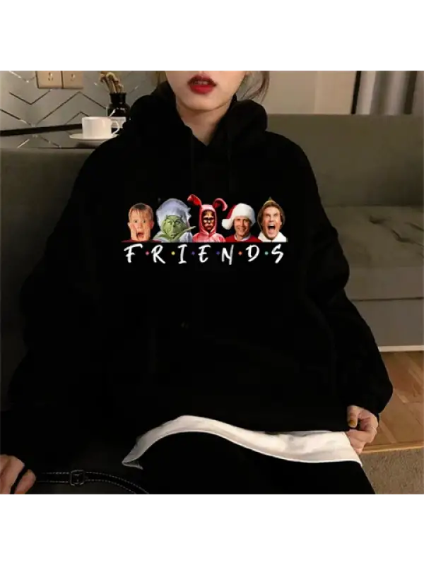 Friends Christmas Baskılı Siyah Unisex Oversize Kapüşonlu Sweatshirt