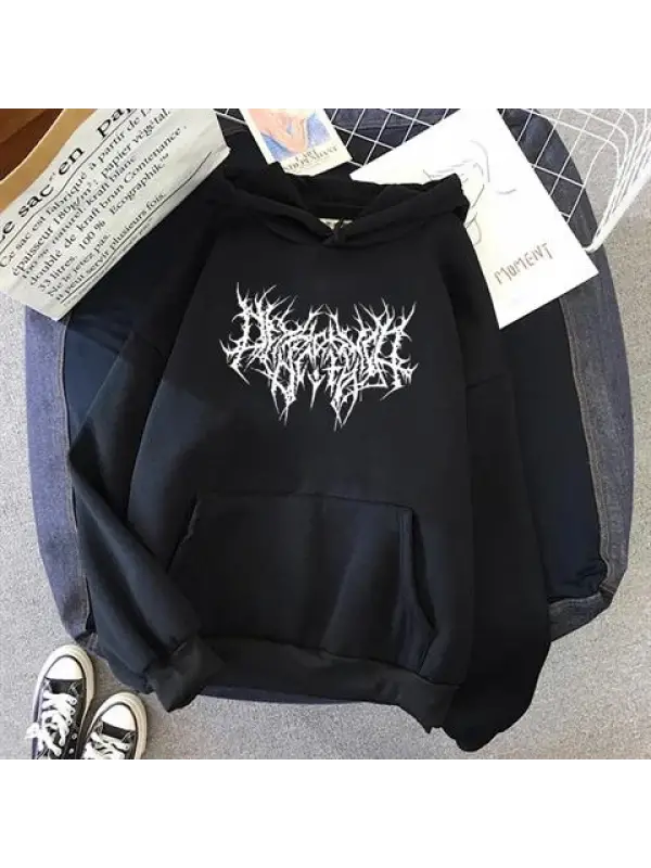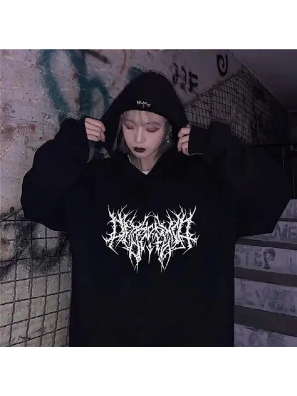 Gothic Graphic Baskılı Siyah Unisex Oversize Kapüşonlu Sweatshirt
