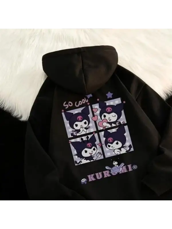 Harajuku Kuromi Ön Arka Baskılı Unisex Oversize Hoodie