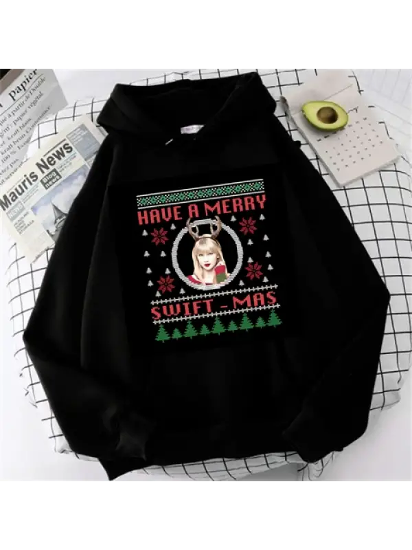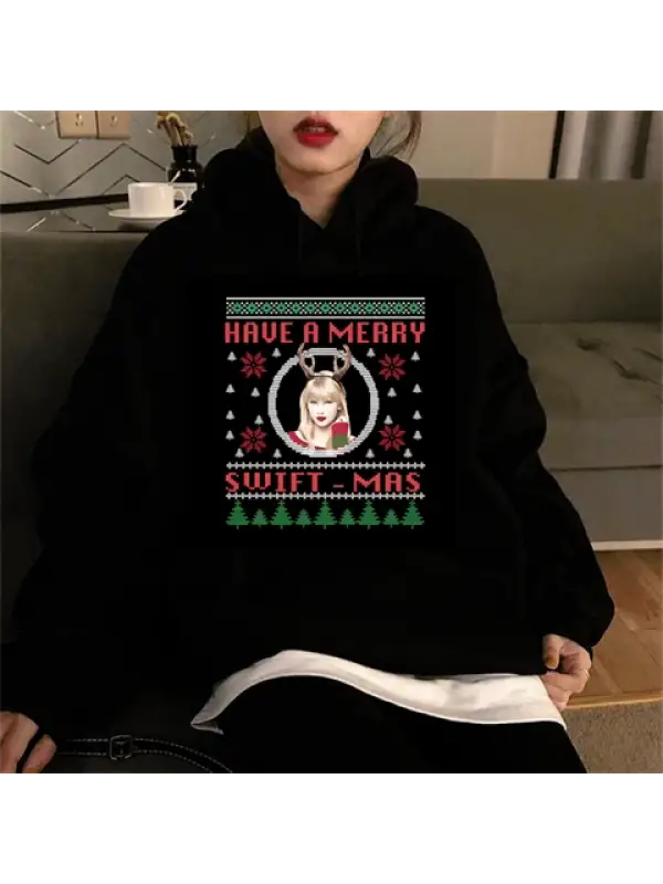 Have A Merry Baskılı Siyah Unisex Oversize Kapüşonlu Sweatshirt
