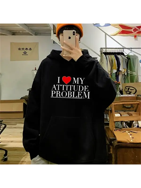 I Love My Attitude Problem Baskılı Unisex Oversize Hoodie